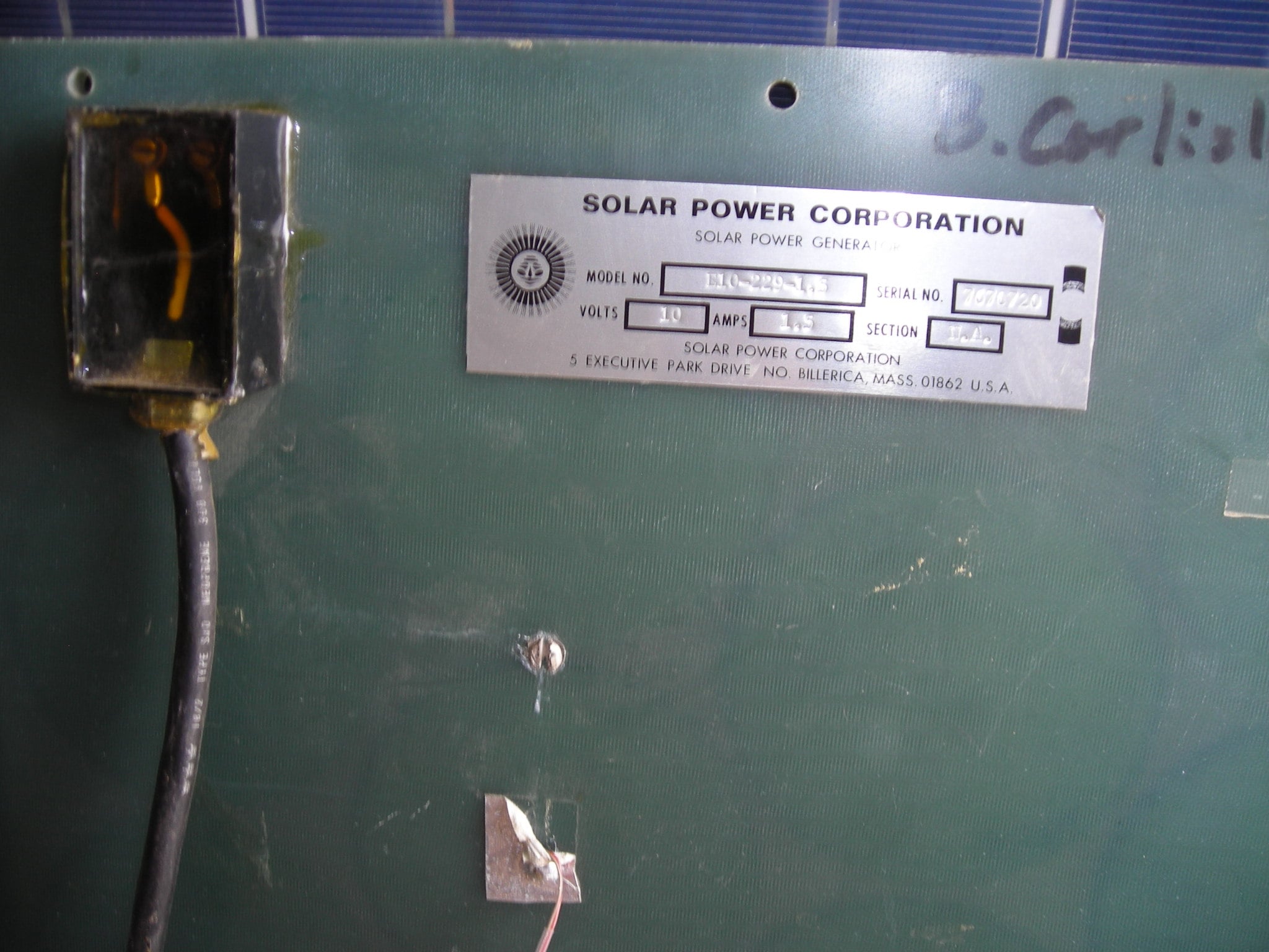 I just acquired 6 vintage Solarex Energizer solar panels that each have 36 round monocrystalline cells that measure almost 4 inches in diameter. I picked these up for historical significance having been in the solar industry for decades. Unfortunately, I can barely read the front labels having faded over the years. The panels are about 17 3/4" x 43 1/2". They are in excellent condition with no signs of delamination or cell degradation and look very clean overall. They have large metal junction boxes on the back and was told they are still producing power, but I have not measured them yet. Does anyone know what year these may have been manufactured or any other historical notes about them?