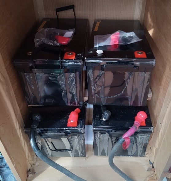 Amazing you can replace a 1000lb lead acid battery with about 300lbds of LiFePo4s. I used an crate from an engine shipped in and put 4" of insulating polystyrene top and bottom inside and a 1/2" on the inside walls, and another 2" all the way around and top outside. I've got an old 50 watt heating pad from before the auto 2 hour shut off on a thermostatically controlled outlet for heat tape that comes on at 50 degrees.